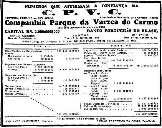 Companhia Parque da Várzea do Carmo/Banco Português do Brasil - Santos, S.Paulo e R.Janeiro