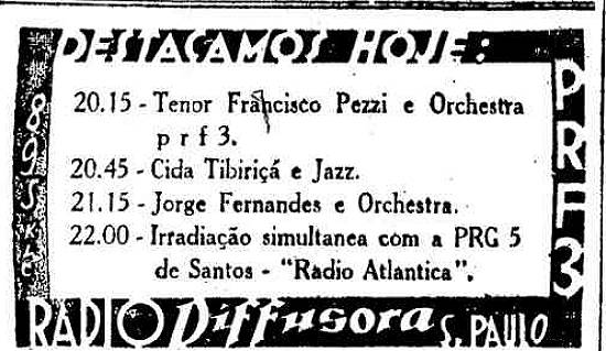 Rádio Atlântica de Santos PRG5 em irradiação simultânea com Rádio Difusora S. Paulo PRF3