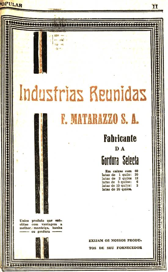 Indústrias Reunidas F. Mattarazzo - fabricanteda Gordura Selecta