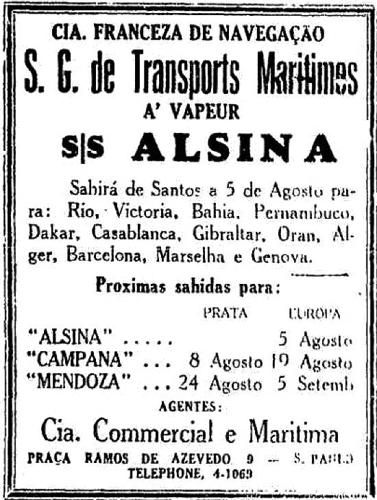 Cia. Commercial e Maritima, agentes da Société Générale de Transports Maritimes á Vapeur Publicado no jornal O Estado de São Paulo em 26 de julho de 1935, página 14 (Acervo Estadão)