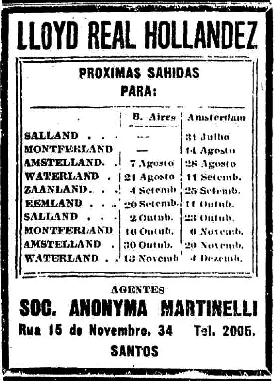 S/A Martinelli - agentes da armadora Lloyd Real Hollandez Publicado no jornal O Estado de São Paulo em 26 de julho de 1935, página 14 (Acervo Estadão)