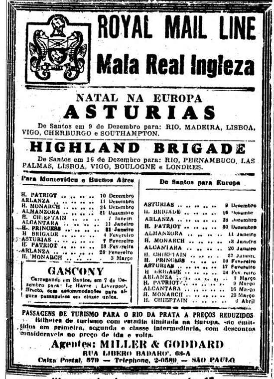 Miller & Goddard, agentes da Mala Real Ingleza Publicado no jornal O Estado de São Paulo em 7 de dezembro de 1935, pág. 15 (Acervo Estadão)
