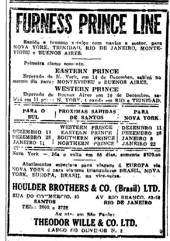 Houlder Brothers & Co. (Brasil) Ltd. - agentes em Santos e R. Janeiro da Furness Prince Line< Publicado no jornal O Estado de São Paulo em 7 de dezembro de 1935, pág. 15 (Acervo Estadão)
