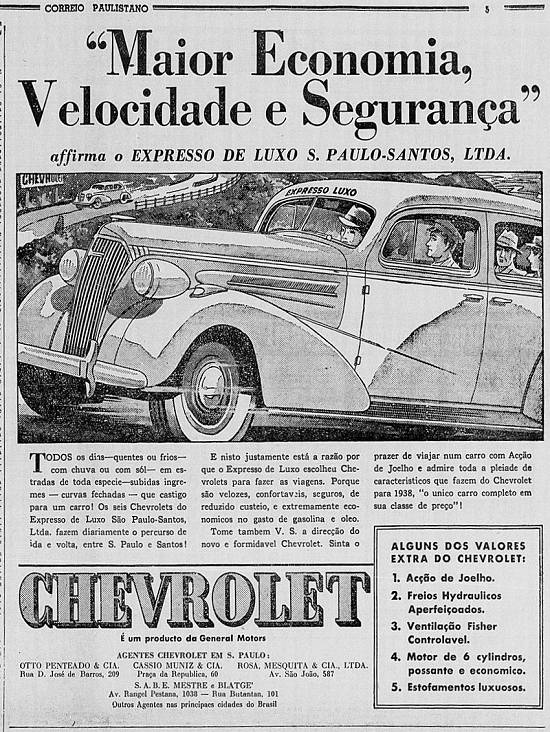 Chevrolet/General Motors - Expresso Luxo São Paulo/Santos Publicado no jornal Correio Paulistano, da capital paulista, em 16 de março de 1938, página 5