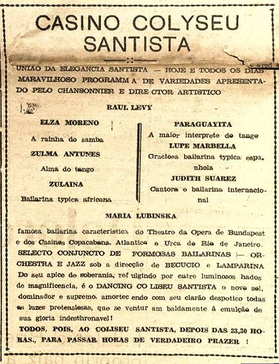 Casino Ilha Porchat Publicado no jornal santista A Tribuna em 6 de abril de 1938 (exemplar no acervo do historiador Waldir Rueda)