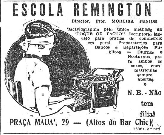 Escola Remington Publicado no jornal santista A Tribuna em 6 de abril de 1938, página 16 (Classificados) (exemplar no acervo do historiador Waldir Rueda)