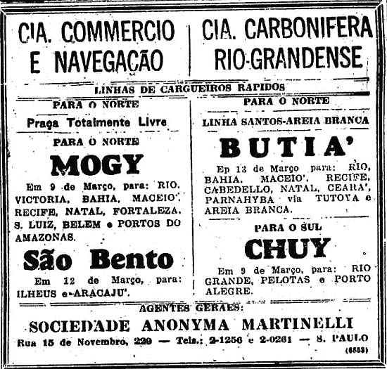 S.A. Martinelli - agentes de Cia. Comércio e Navegação e Cia. Carbonífera Rio-Grandense