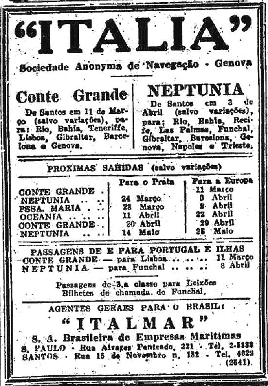 Italmar S.A. Brasileira de Empresas Marítimas, agentes de Italia S.A. de Navegação, de Gênova