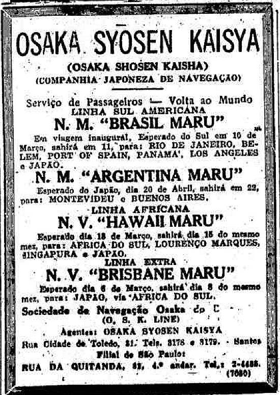 Sociedade de Navegação Osaka do Brasil - agentes de O.S.K Line