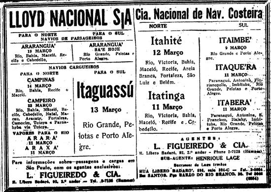 L. Figueiredo & Cia. - agentes de Lloyd Nacional S/A e Cia. Nacional de Navegação Costeira