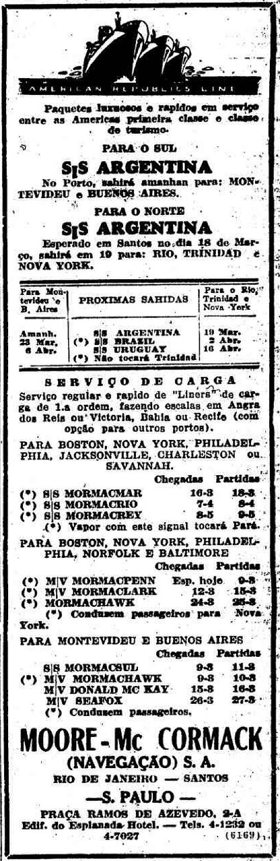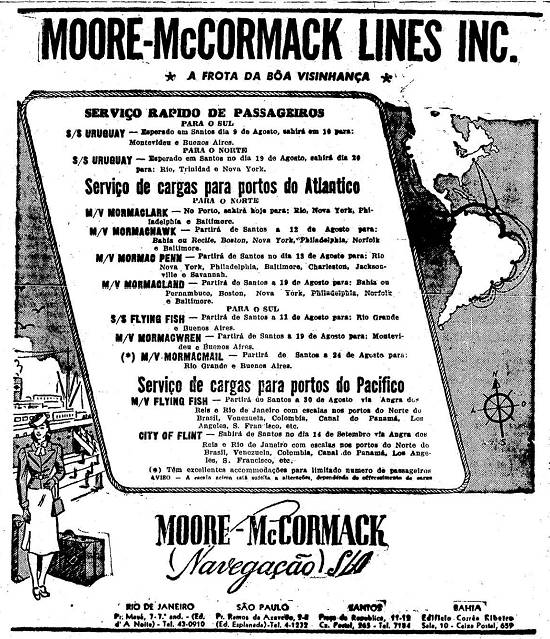 Moore McCormack (Navegação) S. A. - escritórios em Santos Publicado no jornal O Estado de São Paulo em 8 de março de 1940, página 11 (Acervo Estadão)