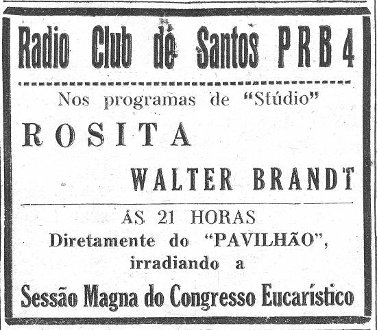 Rádio Club de Santos PRB4 - transmitindo do pavilhão do Congresso Eucarístico