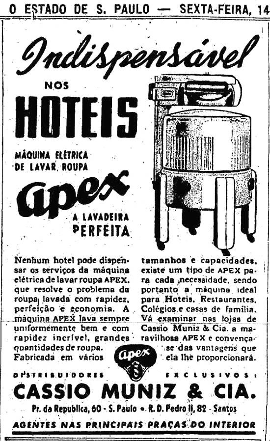 Cassio Muniz & Cia. - máquina elétrica de lavar roupa Apex para hotéis