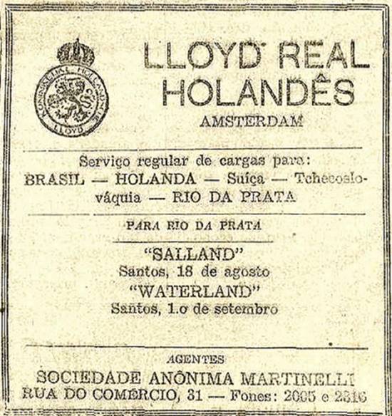 Lloyd Real Holandês, de Amsterdam - agentes: Sociedade Anônima Martinelli