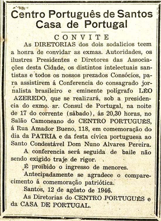 Publicado no jornal Santos-Jornal, em 16 de agosto de 1946, página 2