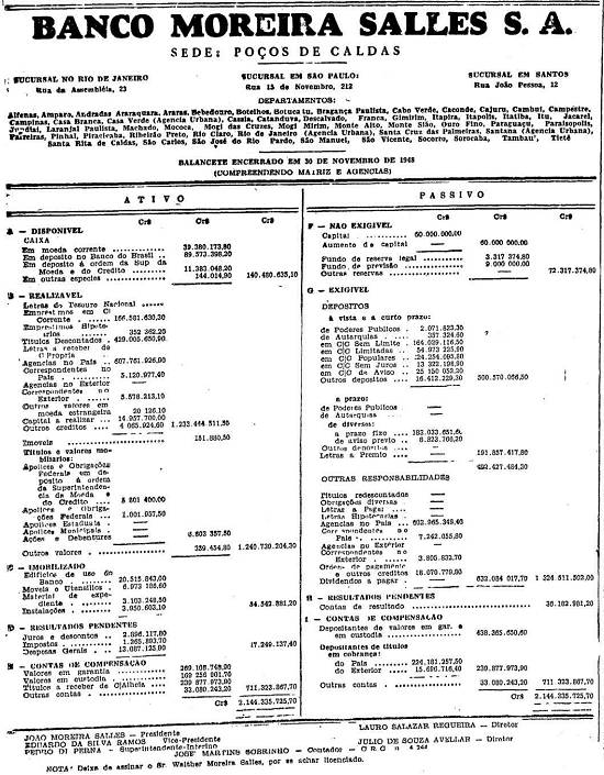 Banco Moreira Salles S.A., sucursal em Santos - balancete encerrado em 20/11/1948