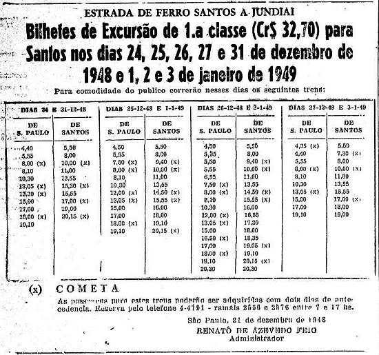 Estrada de Ferro Santos a Jundiaí - bilhetes de excursão para Santos