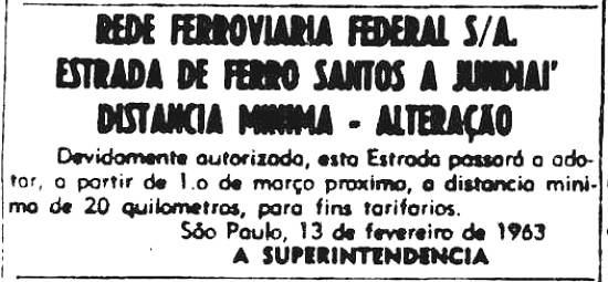 Rede Ferroviária Federal S/A - E.F. Santos a Jundiaí - alteração da distância tarifária mínima