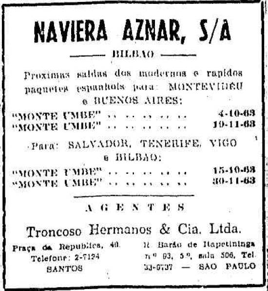 Troncoso Hermanos & Cia. Ltda. - agentes de Naviera Aznar S/A, de Bilbao/Espanha