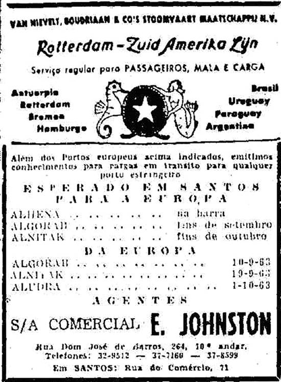 S/A Comercial E. Johnston - agentes de Van Nievelt Goudrieaan/Rotterdam-Zuid Amerika Lÿn