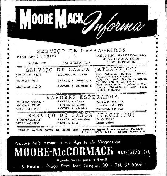Moore-McCormack (Navegação) S.A. - navios no porto de Santos