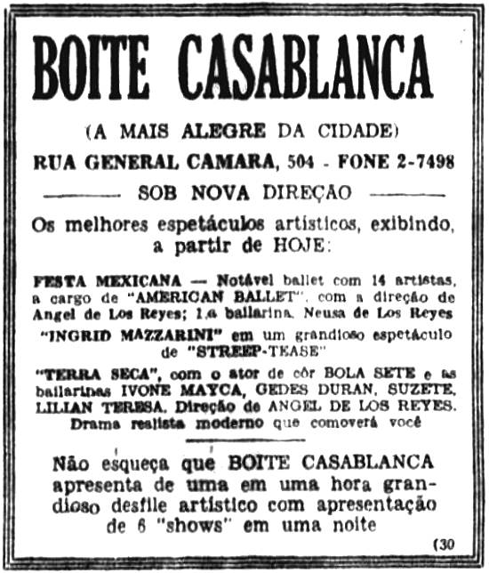 Boite Casablanca, "a mais alegre da cidade", na Rua General Câmara, 504