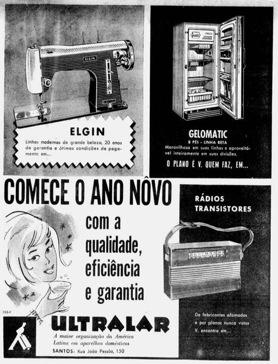 Ultralar Utilidades Domésticas - rádios transistorizados, geladeira Gelomatic e máquina de costura Elgin