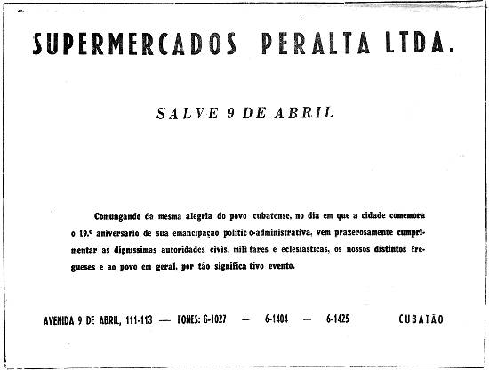Supermercados Peralta e o aniversário de Cubatão