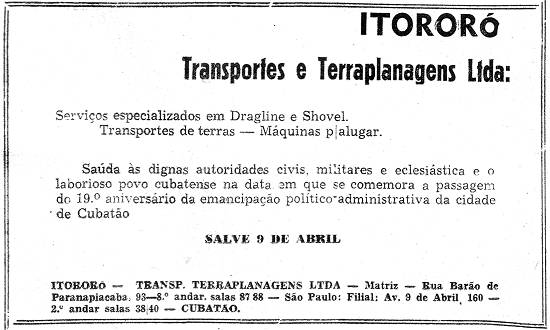 Itororó Transportes e Terraplanagens Ltda. e o aniversário de Cubatão