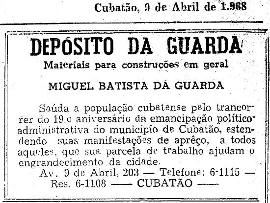 Publicado na edição de estréia do Jornal de Cubatão, em 9 de abril de 1968, página 4