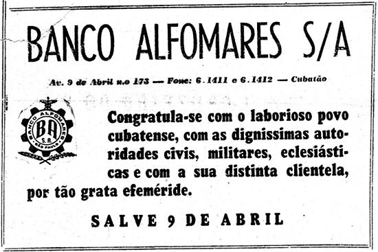 Banco Alfomares S/A e o aniversário de Cubatão