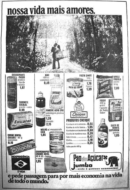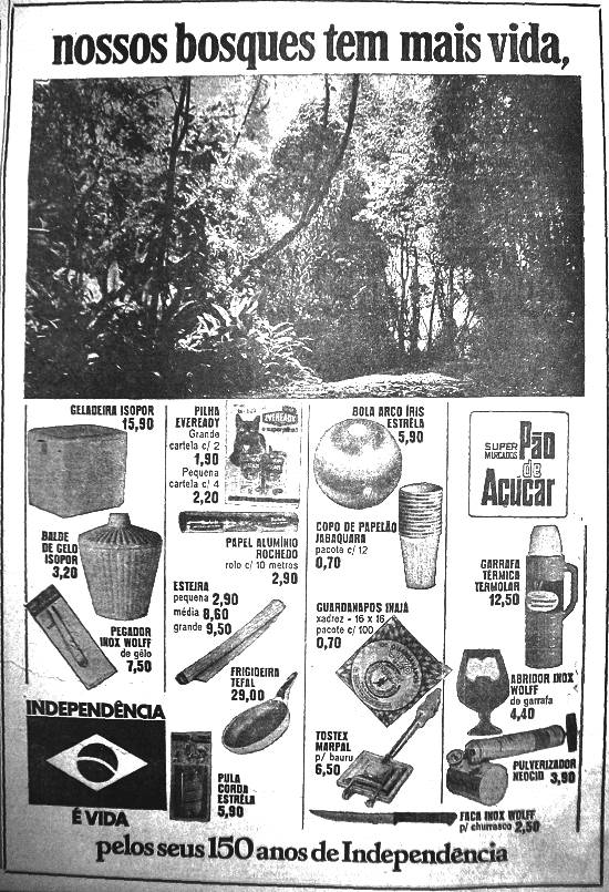Supermercados Pão de Açúcar e o sesquicentenário da Independência do Brasil Publicado no jornal santista A Tribuna em 3 de setembro de 1972, na página 9 do 2º caderno