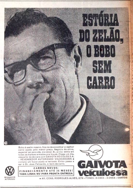Gaivota Veículos S/A. - "Estória do Zelão, o bobo sem carro" Publicado no jornal santista A Tribuna em 30 de julho de 1972, na página 7 do 4º caderno