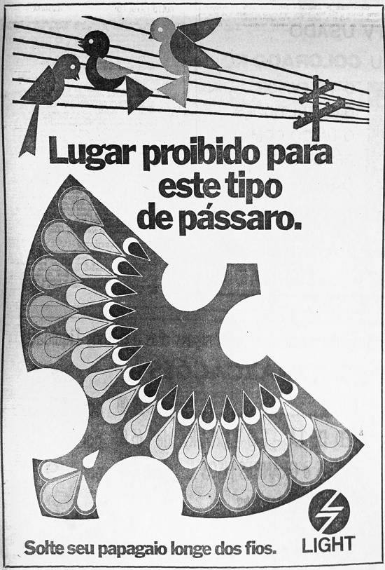 Light Serviços de Eletricidade - campanha "Solte seu papagaio longe dos fios" Publicado no jornal santista A Tribuna em 27 de julho de 1972, na página 8
