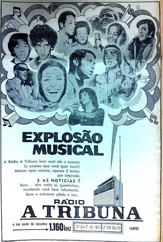 Rádio A Tribuna - Explosão Musical Publicado no jornal santista A Tribuna em 27 de julho de 1972, na página 5