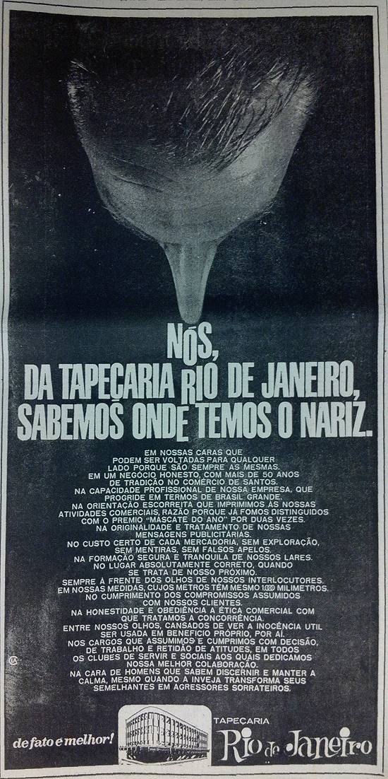 Tapeçaria Rio de Janeiro: "Sabemos onde temos o nariz" Publicado no jornal santista A Tribuna em 17 de julho de 1972, na página 5