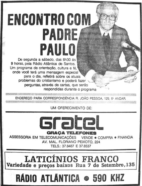 Graça Telefones, Laticínios Franco e Rádio Atlântica de Santos - Um encontro com Padre Paulo