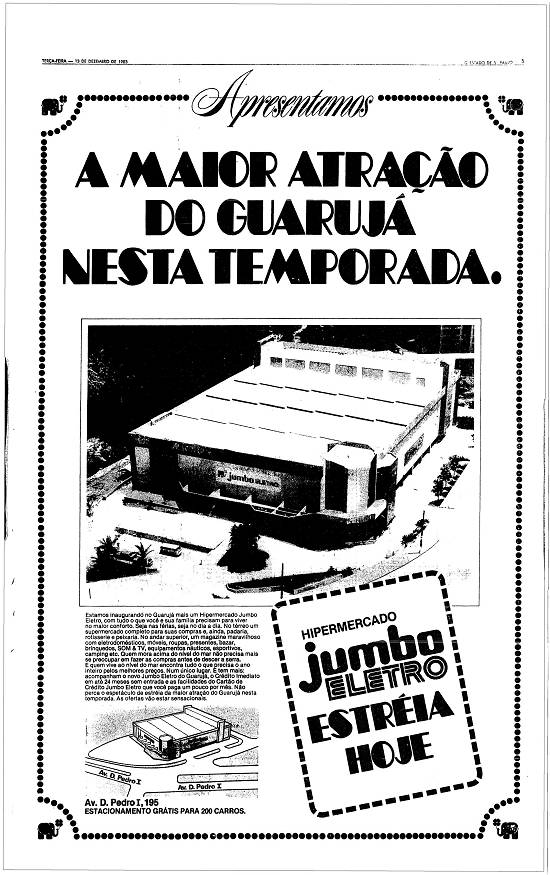 Inauguração do hipermercado Jumbo Eletro na Avenida D. Pedro I, 195, no Guarujá