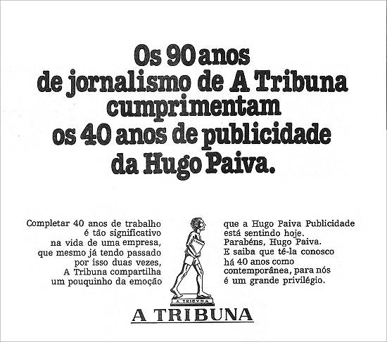 Jornal A Tribuna - homenagem aos 40 anos da Hugo Paiva Publicidade