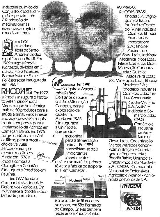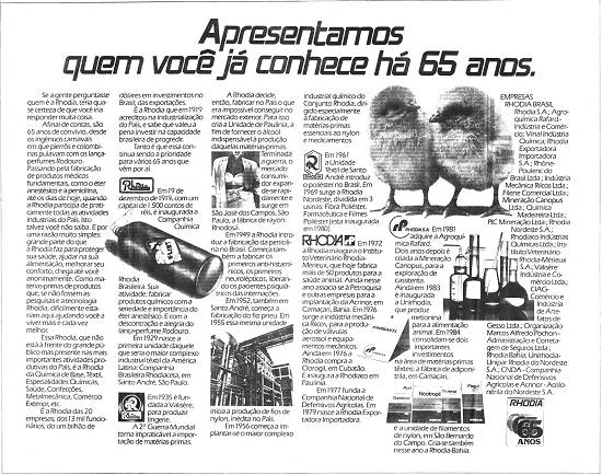 Rhodia S.A. - 65 anos - detalhes do anúncio acima Publicado dn jornal santista A Tribuna, de 19 de dezembro de 1984, páginas 6 e 7