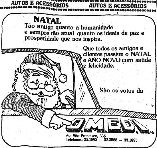 O.M.E.D.I. (autos e acessórios) - mensagem natalina Publicado no jornal santista A Tribuna, de 24 de dezembro de 1984, página 20