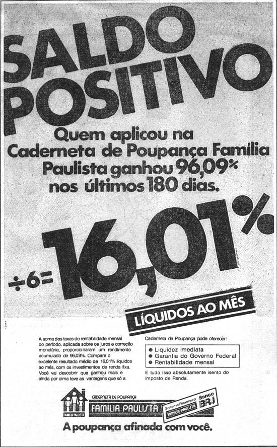 Associação de Poupança e Empréstimo - APE da Família Paulista/Banco BRJ - rendimentos