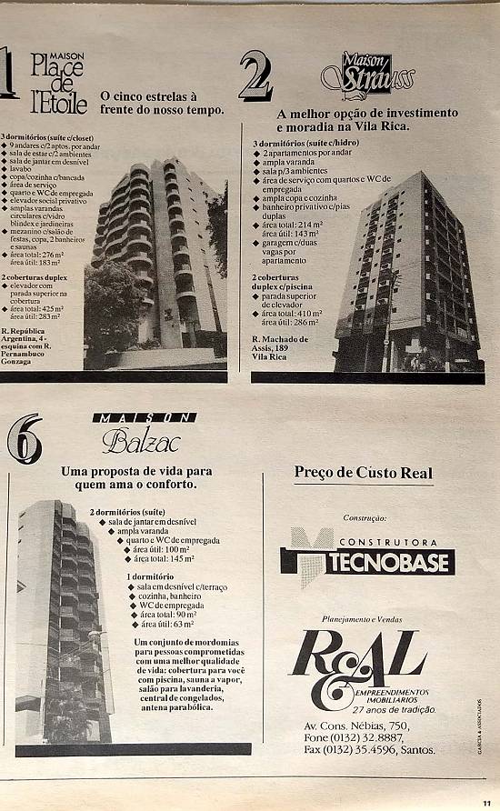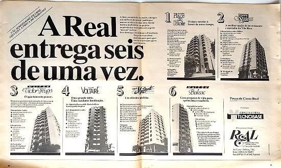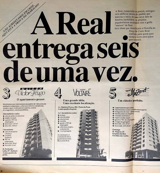 "Não acreditamos em crise. Aqui está a prova do trabalho! A Real entrega seis de uma vez" - Real Empreendimentos Imobiliários - Construtora Tecnobase - edifícios griffe Maison: Place de l'Etoile, Strauss, Victor Hugo, Voltaire, Mozart e Balzac