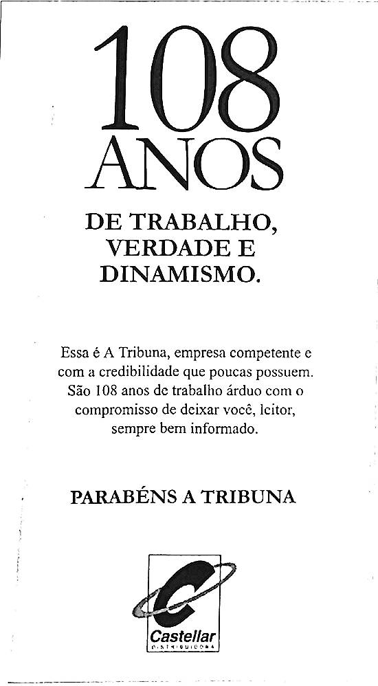 Castellar Distribuidora - parabéns ao jornal A Tribuna pelo 108º aniversário