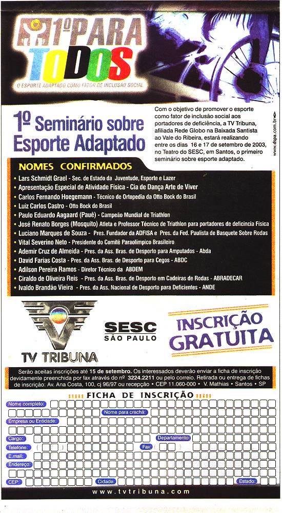 1º ParaTodos- Seminário sobre Esporte Adaptado - TV Tribuna/Sesc São Paulo