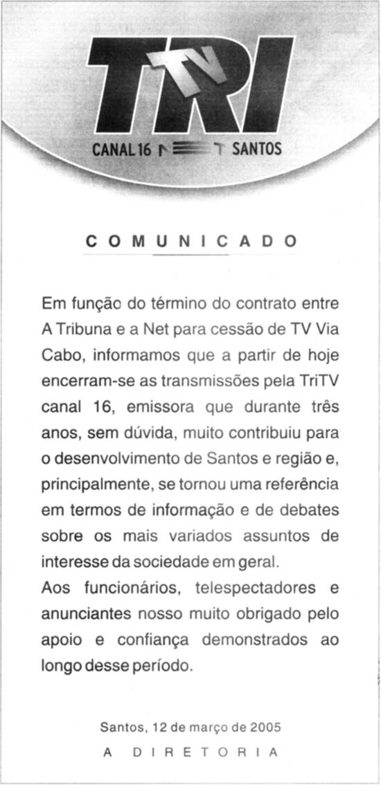 Publicado na edição de 7 de abril de 2005 do jornal santista A Tribuna