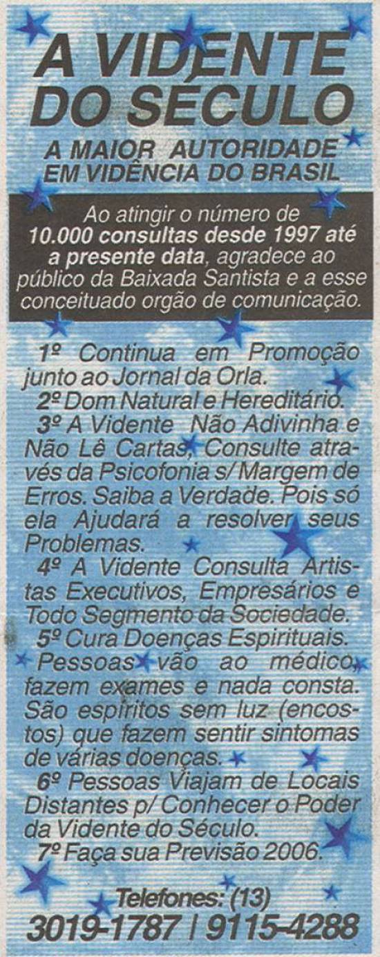 Publicado no semanário santista Jornal da Orla em 28 e 29 de outubro de 2006