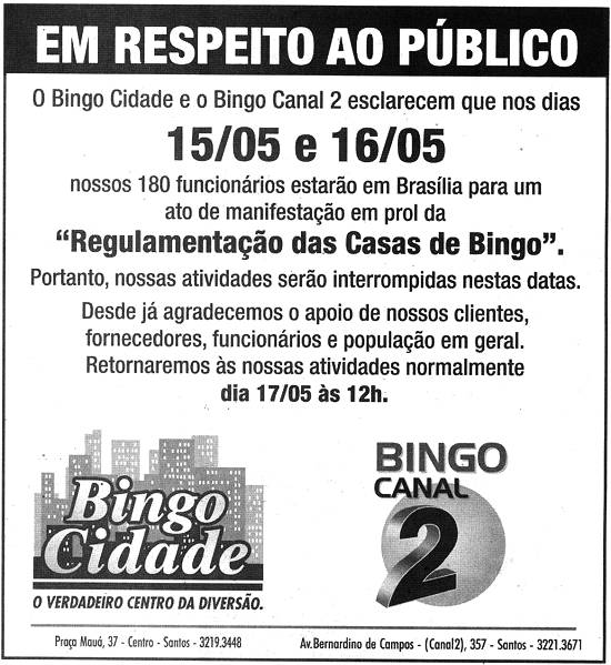 Publicado no jornal santista A Tribuna em 16 de maio de 2007