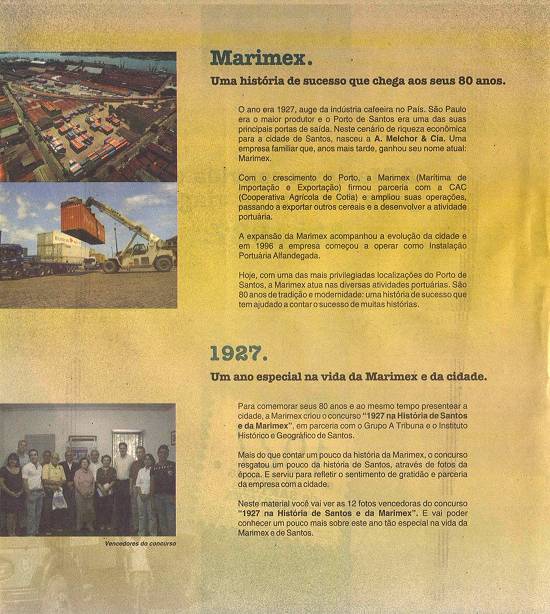 Marimex Instalações Portuárias Alfandegadas - 80 anos - caderno especial de 8 páginas Publicado com o jornal santista A Tribuna em 30 de dezembro de 2007