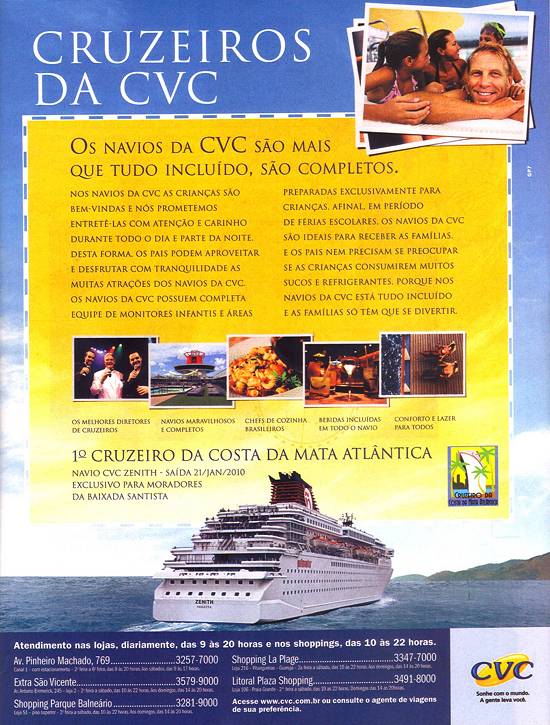 CVC Turismo - criada em maio de 1972 por Carlos Vicentini Cerquiari, desde 1994 em Santos, realiza